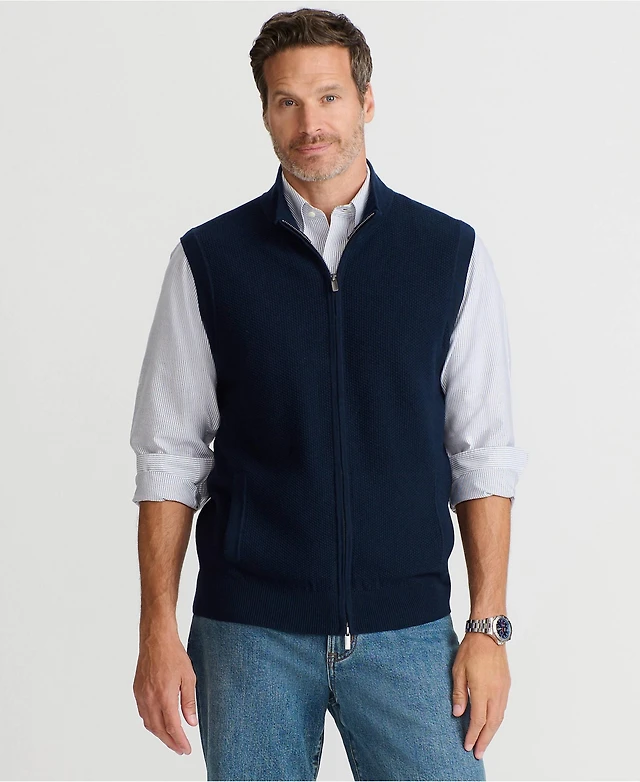 Lands' End Men's Washable Merino Full Zip Sweater Vest