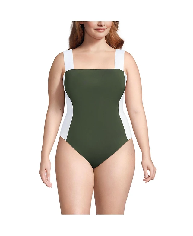 Lands' End Plus Square Neck High Leg One Piece Swimsuit