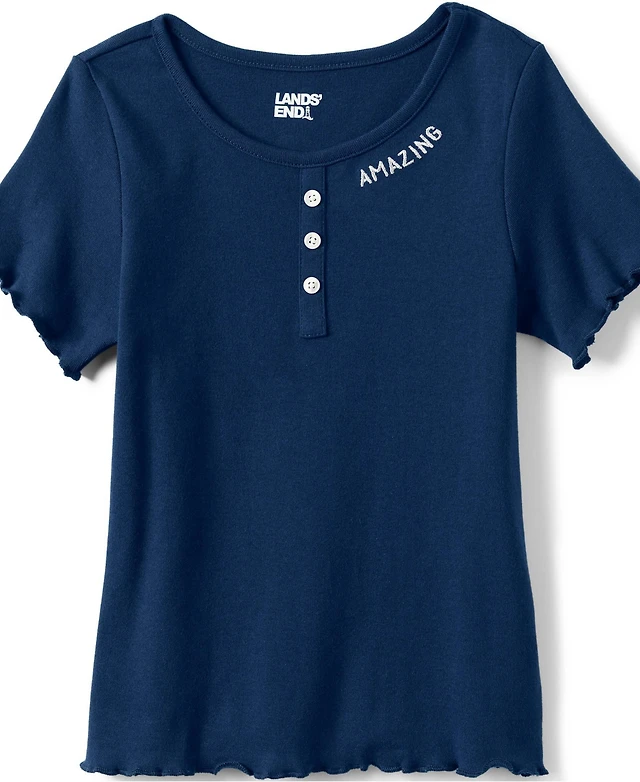 Lands' End Women's Drapey Rib Fitted Short Sleeve T-Shirt