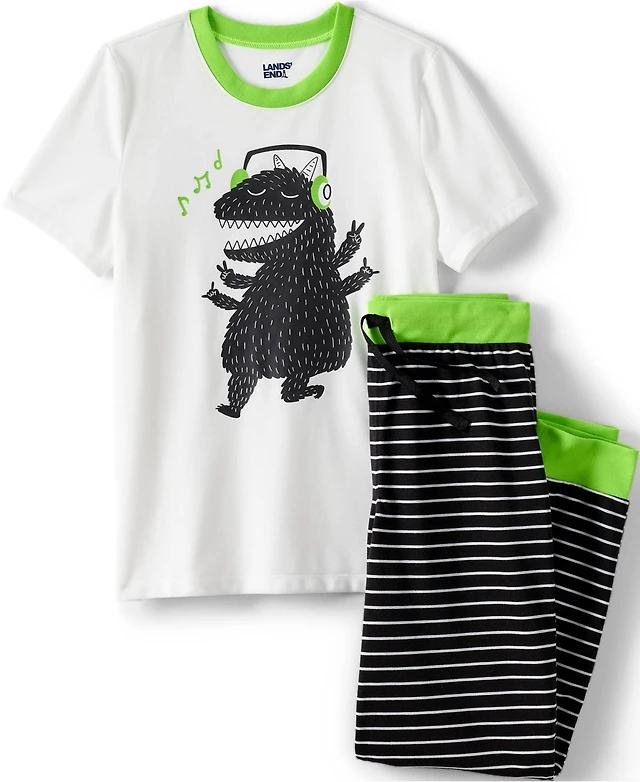 Lands' End Big Girls Short Sleeve Top and Jogger Bottom Pajama Set