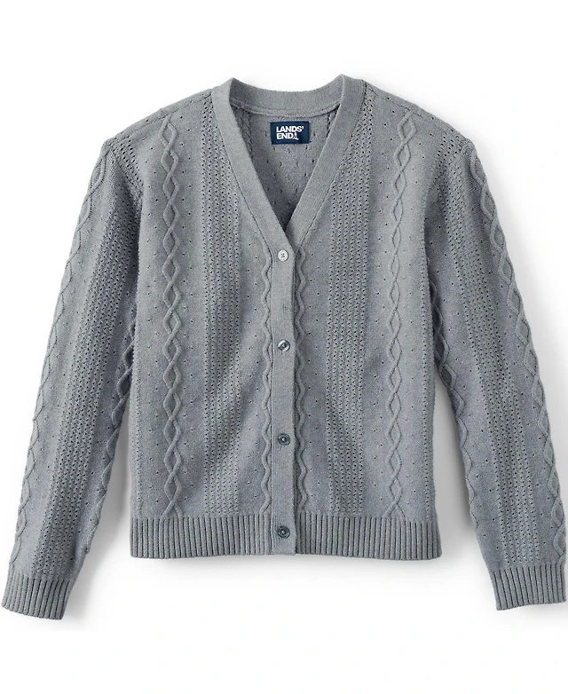 Lands' End Women's Drifter Varsity Vneck Relaxed Cardigan Sweater