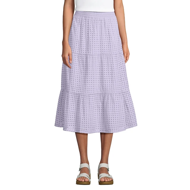 Lands' End Women's Poplin Tiered Eyelet Midi Skirt