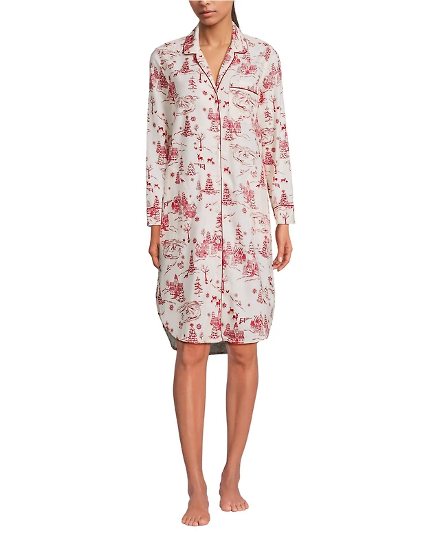 Lands' End Women's Flannel Long Sleeve Sleepshirt Nightgown