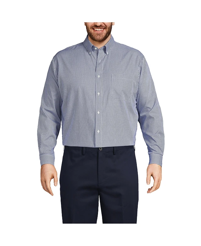 Lands' End Men's Big and Tall Traditional Fit Pattern No Iron Supima Pinpoint Buttondown Collar Dress Shirt