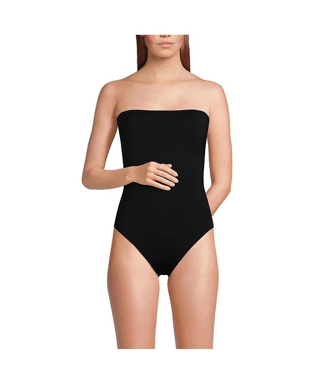 Lands' End Women's Chlorine Resistant Bandeau High Leg Strappy One Piece Swimsuit