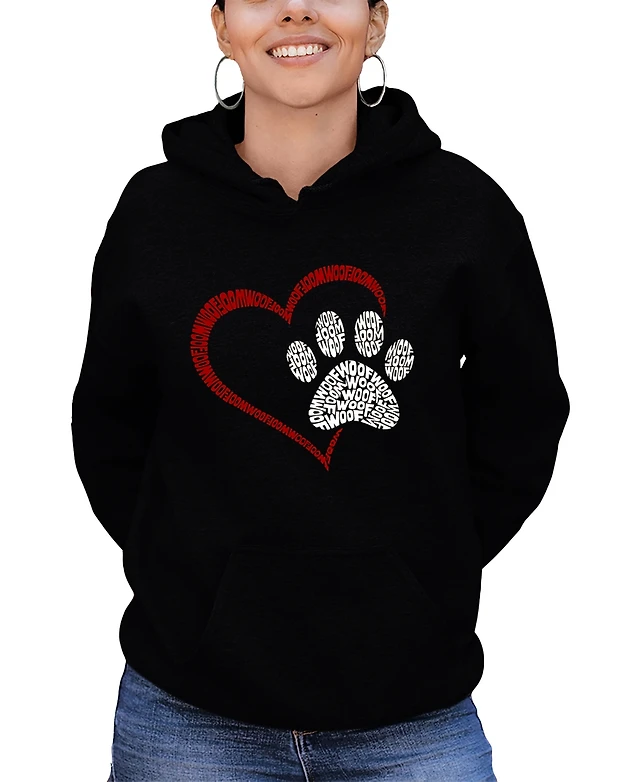 La Pop Art Women's Word Paw Heart Hooded Sweatshirt