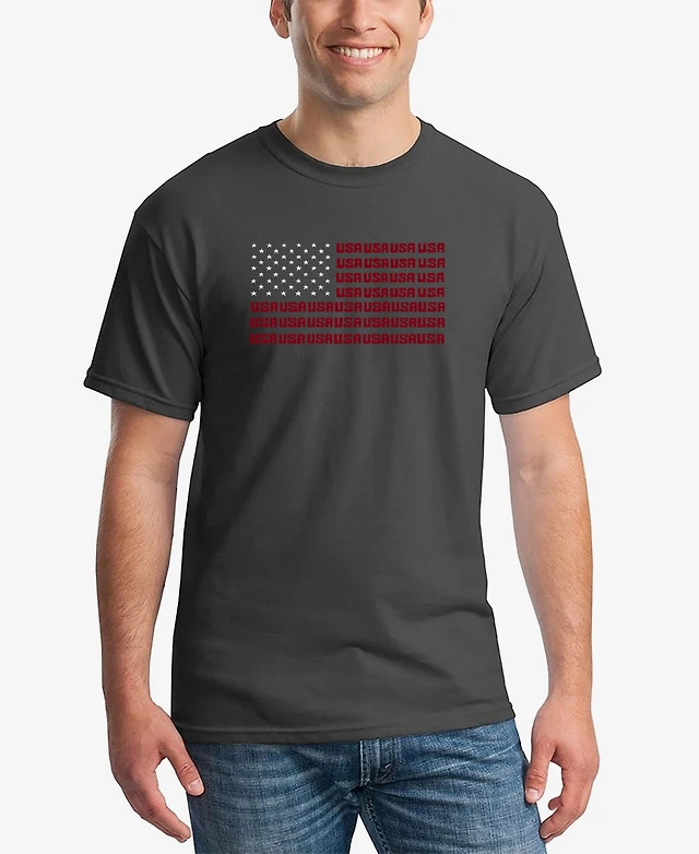 La Pop Art Men's Word Fireworks American Flag T-shirt