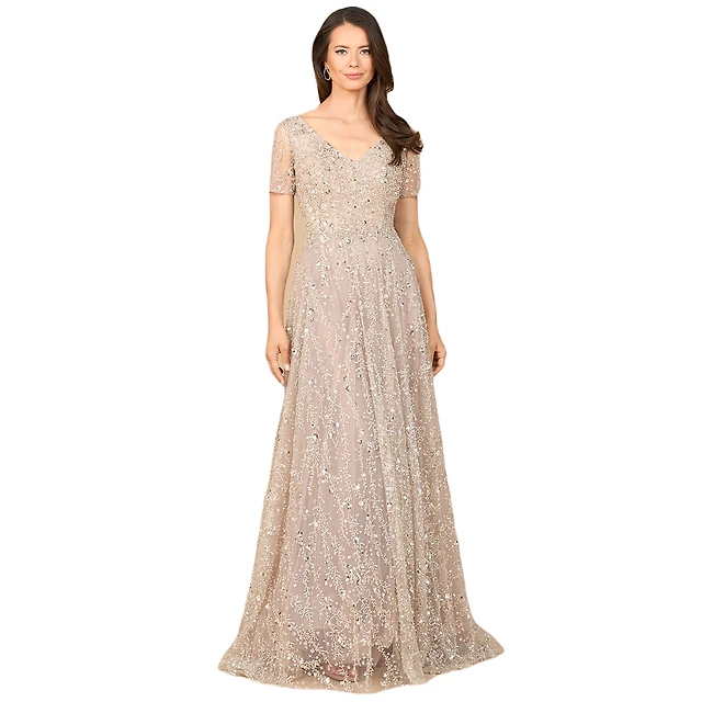 Lara Women's Short Sleeve V-Neck Beaded Ballgown