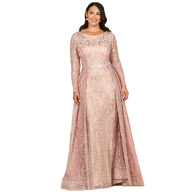 Lara Women's Plus Illusion Neckline A-line Long Sleeves Gown