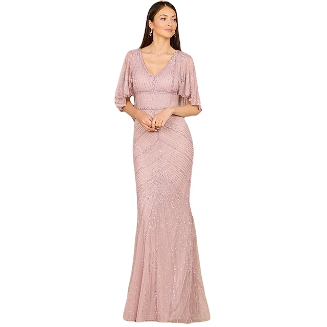 Lara Women's Cape Sleeve V-Neck Beaded Gown