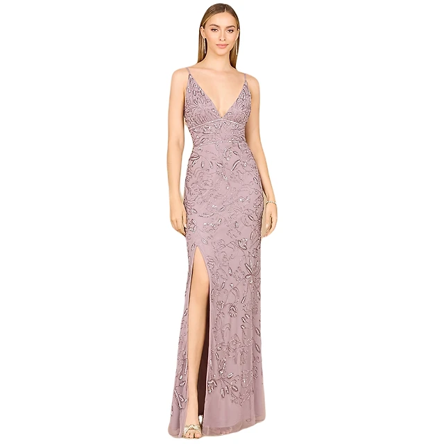 Lara Women's Beaded Cap Sleeve Sheath Gown