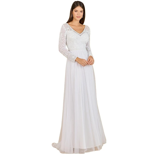 Lara Women's Long Sleeve Bridal Gown with Flowy Skirt