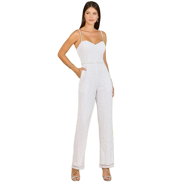 Lara Women's Spaghetti Strap Beaded Gown with Slit