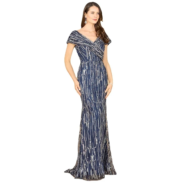 Lara Women's V-Neck, Short Sleeve Beaded Gown