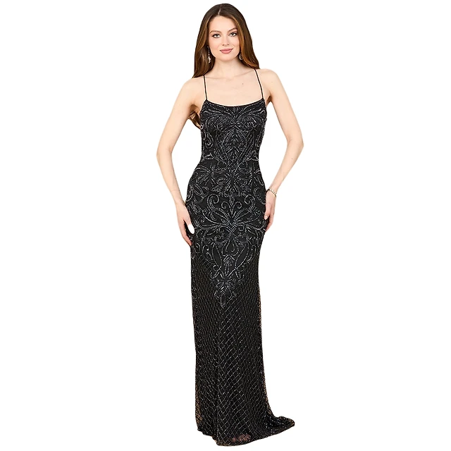 Lara Women's Long Sleeve Queen Anne Beaded Gown