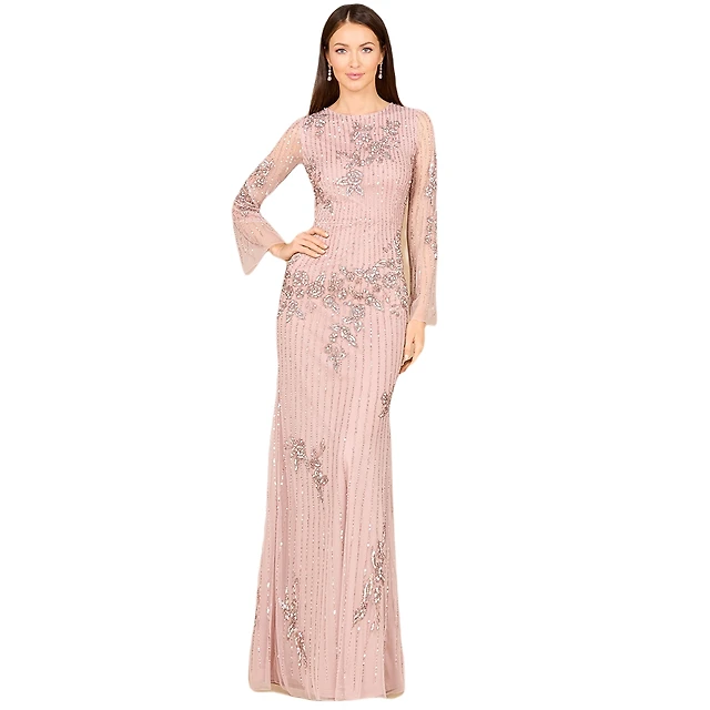 Lara Women's Long Sleeve, High Neck Beaded Gown - Outlet