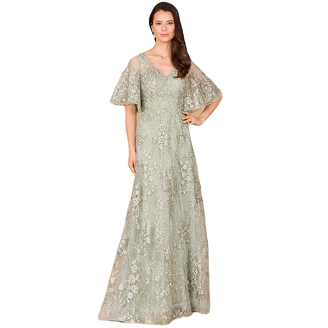 Lara Women's V-neck, Cape Sleeve Gown