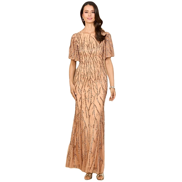 Lara Beaded Gown with Flutter Sleeves