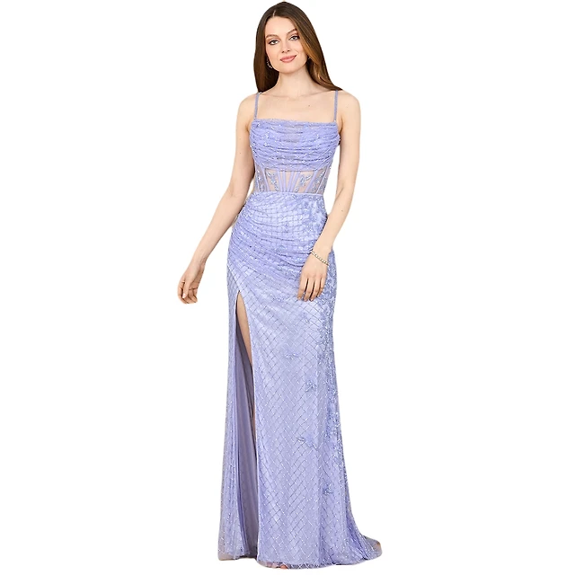Lara Women's Beaded Corset Prom Dress with Slit