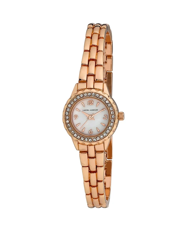 Laura Ashley Women's Mini Link Crystal Bezel Pink Alloy Bracelet Watch 26mm