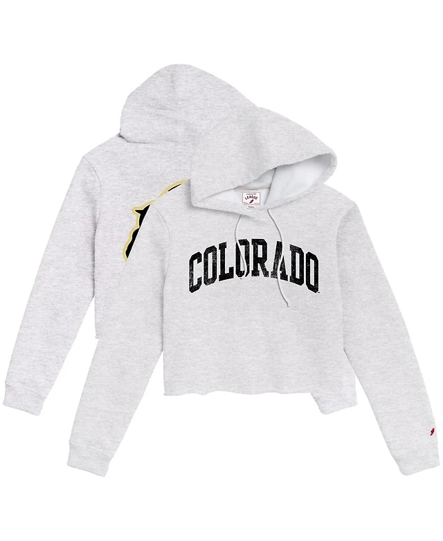 League Collegiate Wear Women's Ash Colorado Buffaloes 2-Hit 1636 Cropped Pullover Hoodie