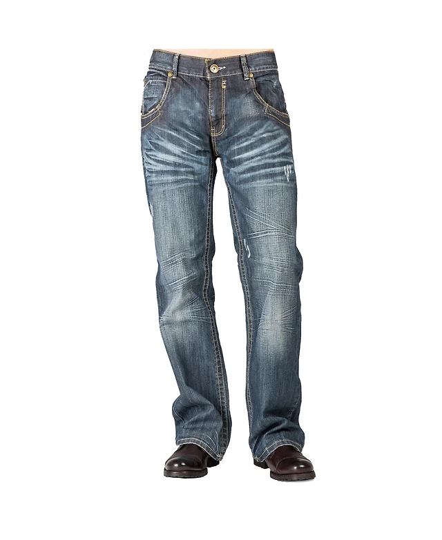 Level 7 Men's Relaxed Bootcut Denim Distressed Jeans with Zipper Pocket