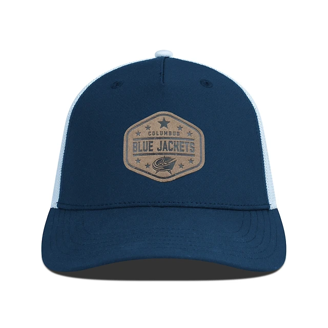 Men's Levelwear Navy Columbus Blue Jackets Faux Leather Patch Structured Adjustable Hat