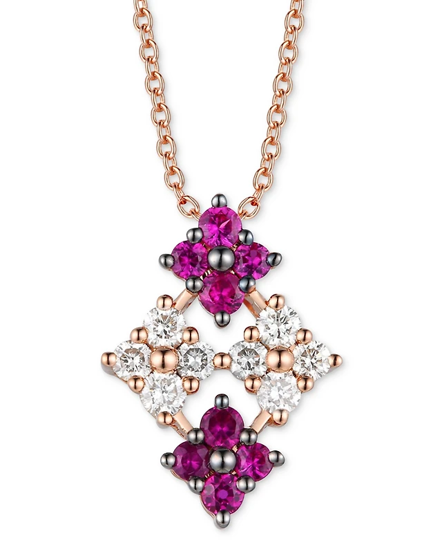 Le Vian Passion Ruby (1/6 ct. t.w.) & Chocolate Ombre Diamond (1-1/3 ct. t.w.) Equestrian Adjustable 20" Pendant Necklace in 14k Gold
