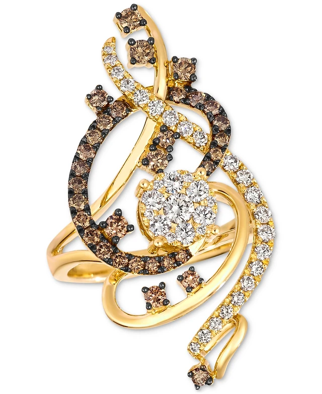 Le Vian Chocolate Diamond & Nude Diamond Halo Cluster Twist Ring (1-1/20 ct. t.w.) in 14k Gold