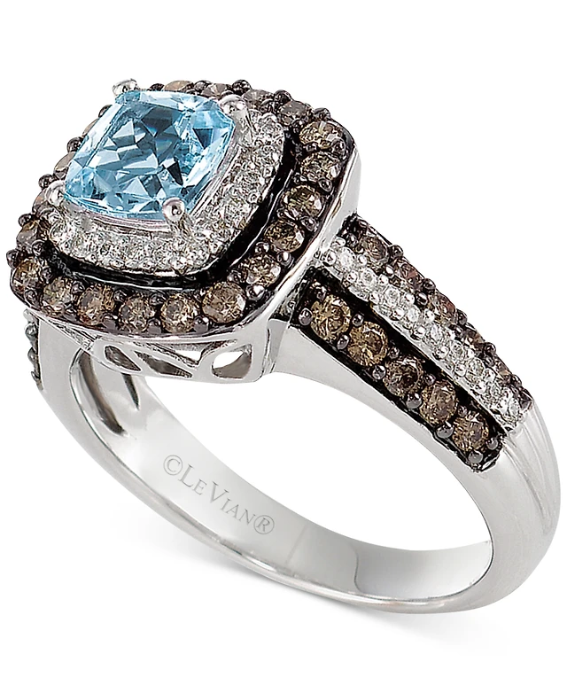 Le Vian Chocolate White Diamond Aquamarine Stackable Rings In 14k White Gold