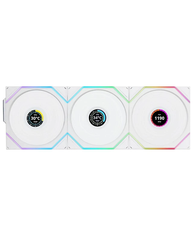 Lian-Li Uni Fan Tl Wireless 1.6" Lcd 120mm Argb Case Fan with Controller, White, 3-Pack