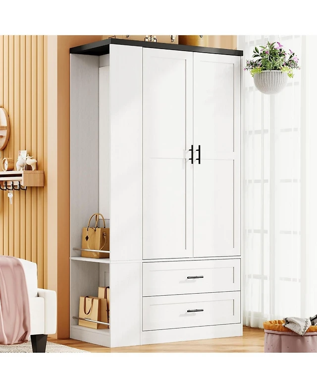 Likimio Wardrobe with Large Mirror, 2 Doors, 2 Drawers, and 2 Shelves, White