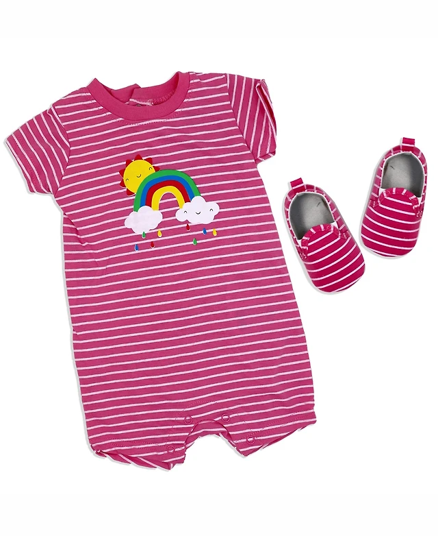 Lily & Jack Baby Girls Short Sleeved Rainbow Romper and Shoes, 2 Piece Set