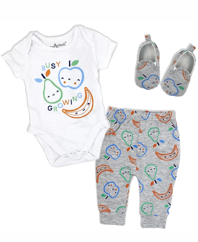 Lily & Jack Baby Boys Busy Growing Bodysuit, Jogger Pants and Shoes, 3 Piece Set