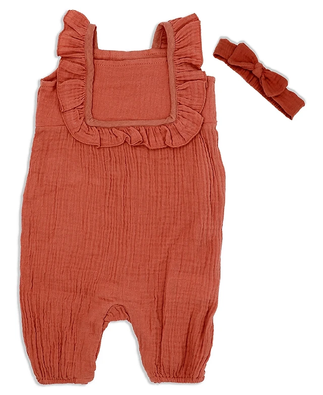 Lily & Jack Baby Girls Ruffle Sleeved Muslin Romper and Headband, 2 Piece Set