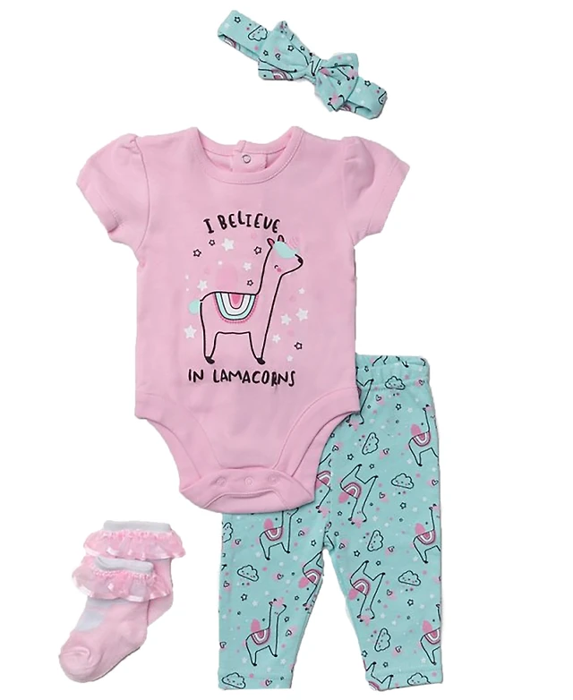 Lily & Jack Baby Girls Lamacorn Bodysuit, Leggings, Socks and Headband, 4 Piece Set