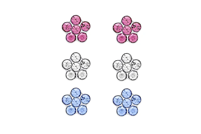 Lily Nily Girls White, Lavender, and Pink Cz 3 Pairs Studs Set in Sterling Silver