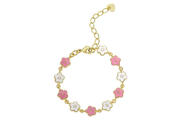 Lily Nily Girls Pink and White Flower Link Bracelet