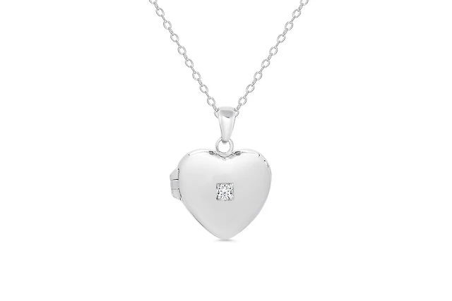 Lily Nily Girls Silver Plated Cz Heart Locket Necklace
