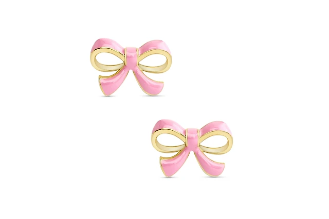 Lily Nily Girls Lab Ruby Bow Stud Earrings in 18K Gold over Sterling Silver