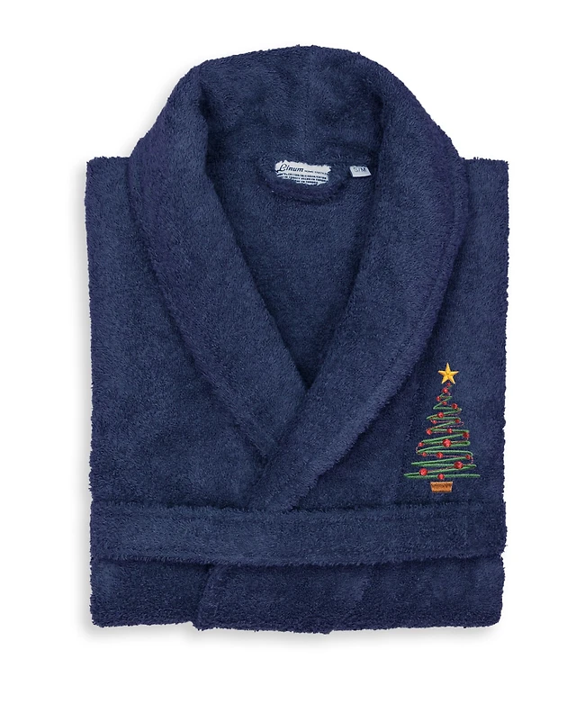 Linum Home Christmas Tree Design Embroidered Terry Bathrobe
