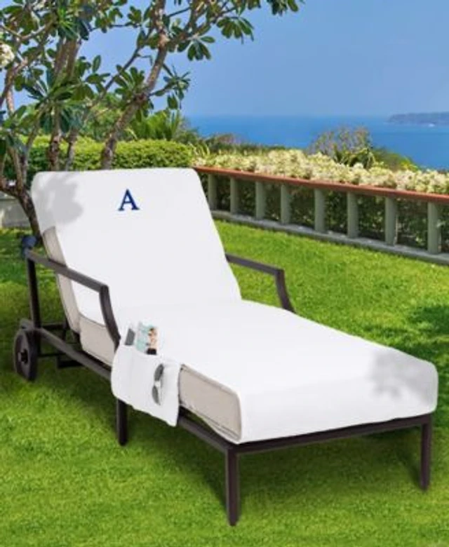 Linum Home Personalized Turkish Cotton Chaise Lounge Cover With Side Pockets