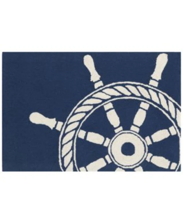 Liora Manne Front Porch Indoor Outdoor Ship Wheel Navy Area Rug