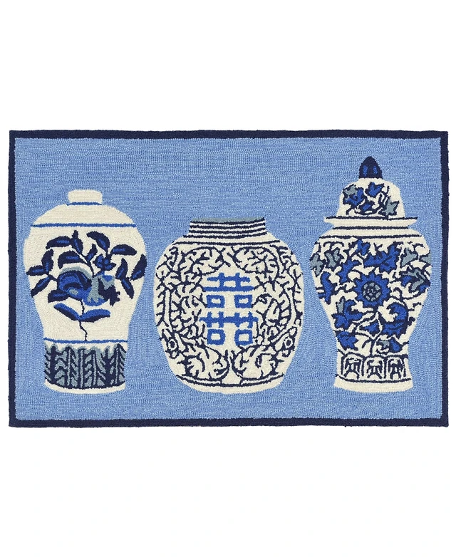 Liora Manne Front Porch Indoor Outdoor Ginger Jars Blue Area Rugs