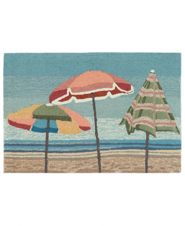 Liora Manne' Frontporch Beach Umbrellas Aqua 2' x 3' Outdoor Area Rug