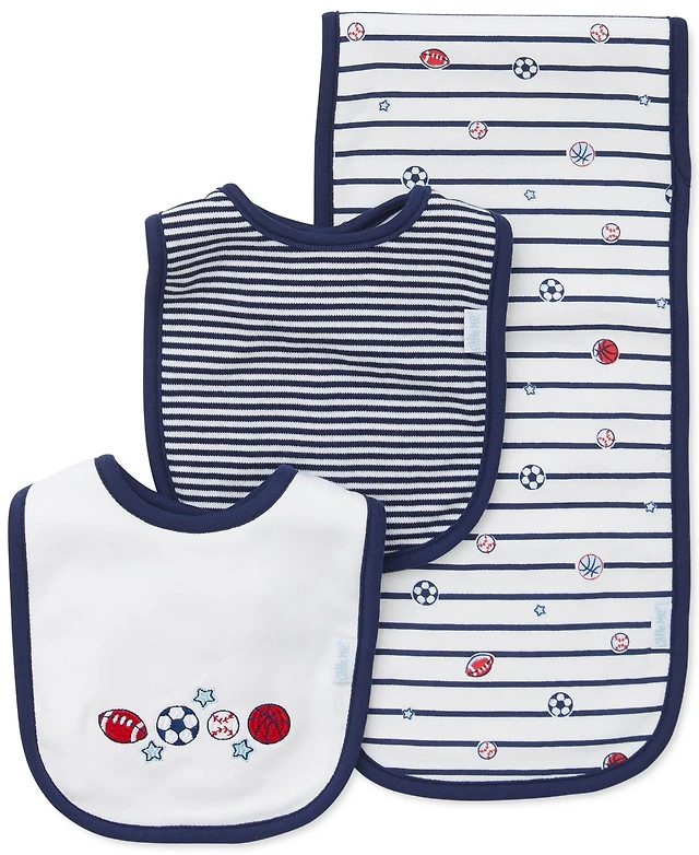 Little Me Baby Boys 3-Pack Sports Star Cotton Bibs & Burp Cloth