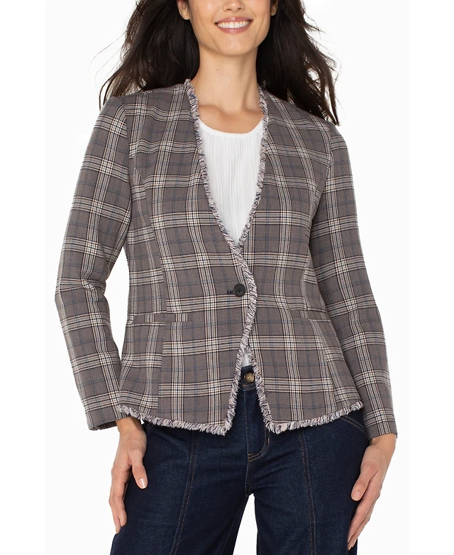 Liverpool Los Angeles Women's Collarless Fray-Trim Fitted Blazer