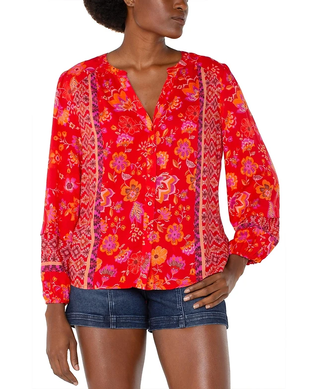 Liverpool Los Angeles Women's Long Sleeve Button Front Woven Blouse