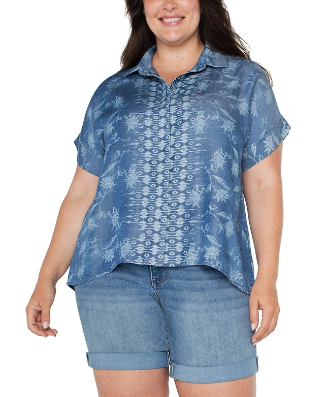 Liverpool Los Angeles Petite Printed Button-Front Shirred Blouse