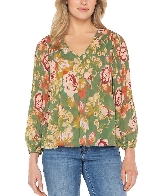 Liverpool Los Angeles Women's V-Neck Long-Sleeve Pleated Blouse